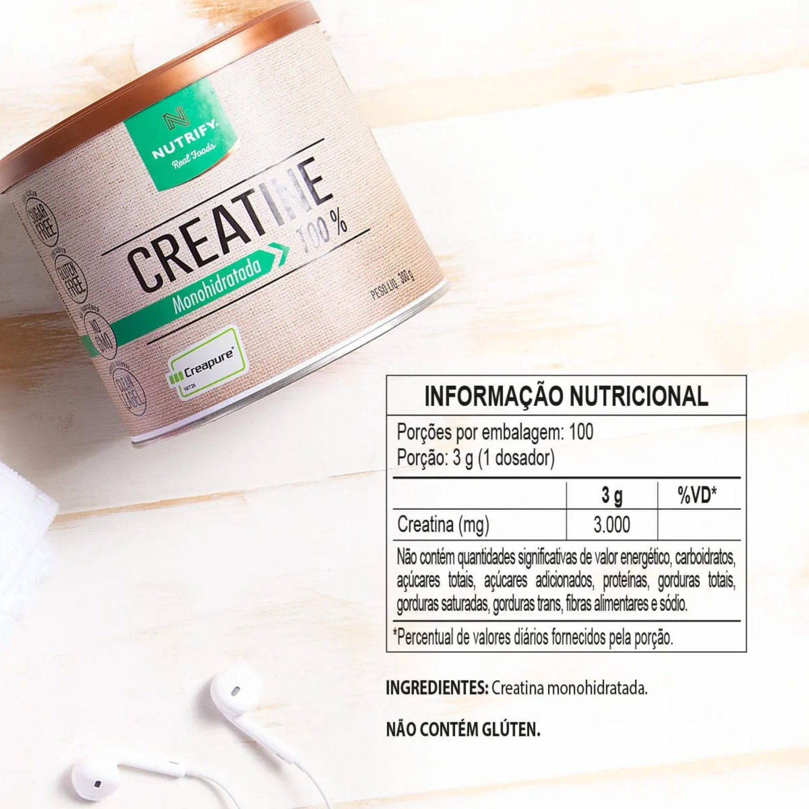 Creatina pura, sem aditivos artificiais.